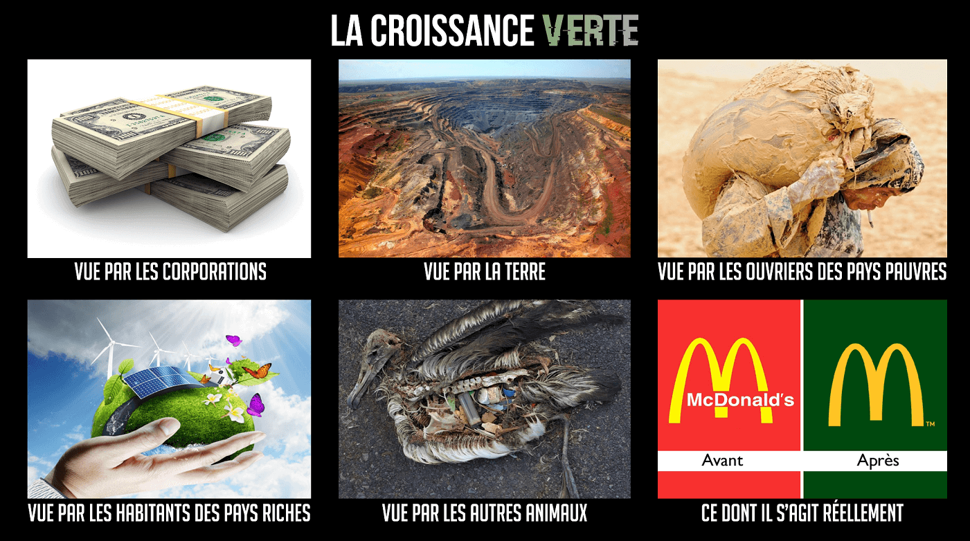 L’énergie verte produite ne supprime pas de l’énergie « noire » mais se rajoute çà elle pour engendrer plus de compétitivité, plus consommation de ressources primaires. Le capitalisme vide la planète de ses ressources et prépare une guerre économique qui peut dégénérer.